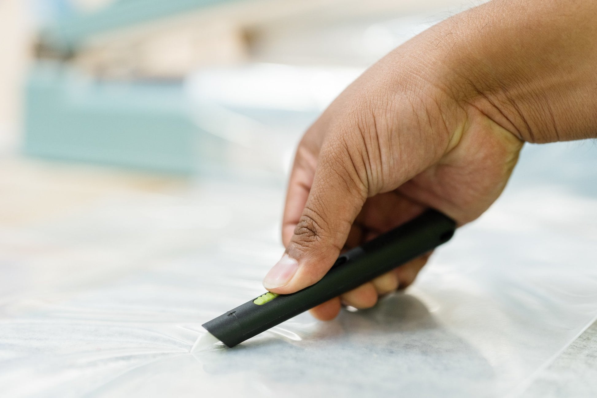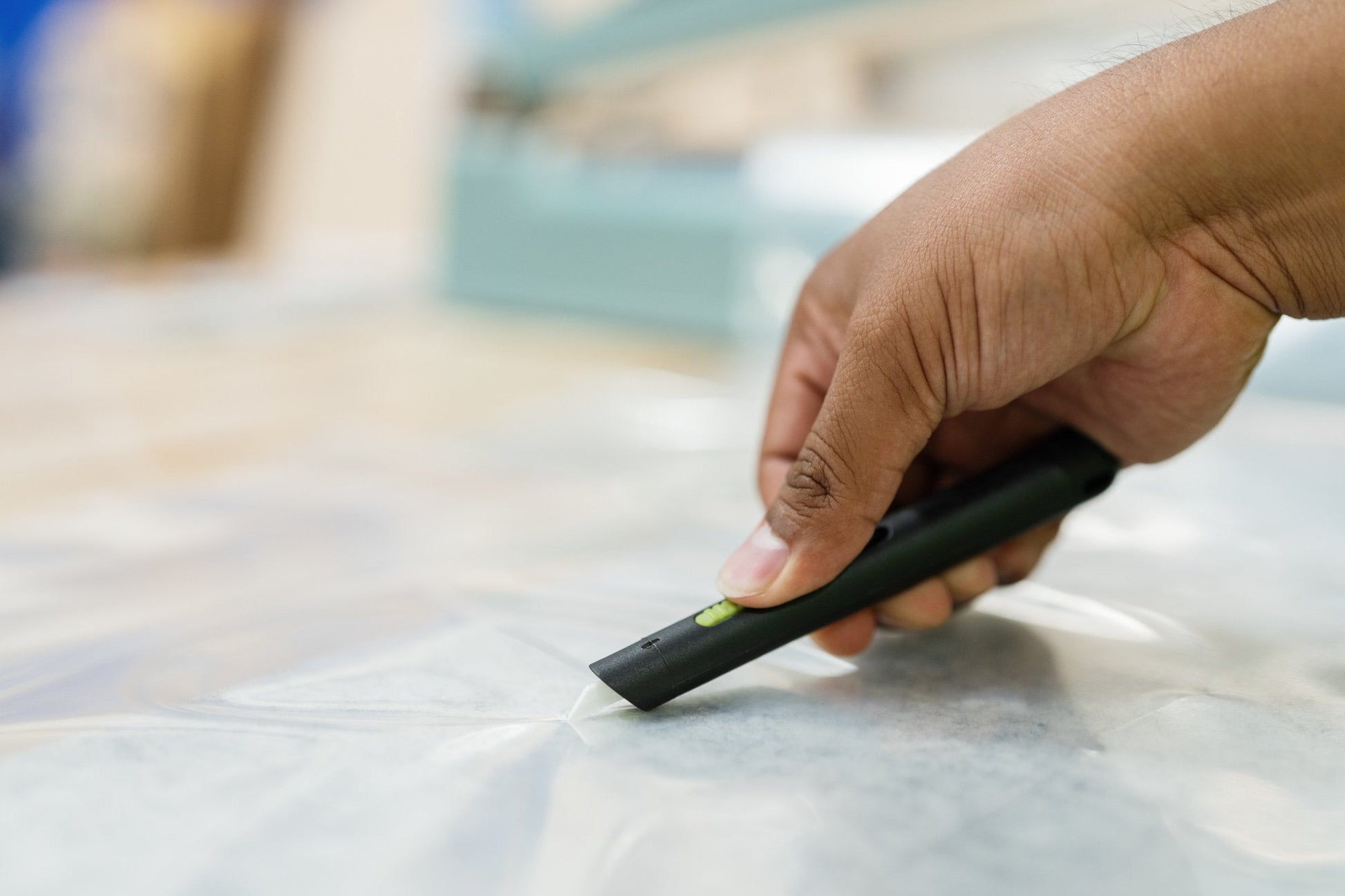 - Slicing plastic packaging and shrink wrap