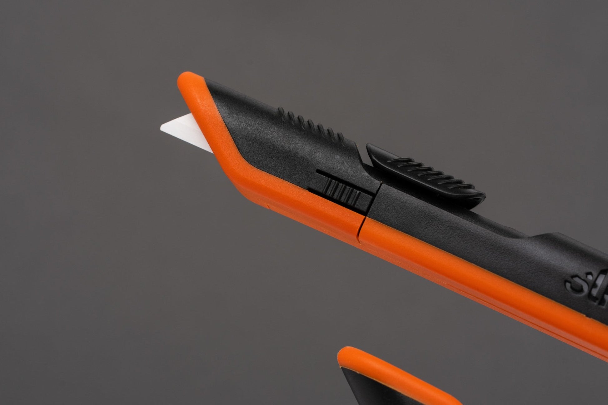 - Manual retraction with two cutting positions allows you to expose the blade without having to hold it in the open position