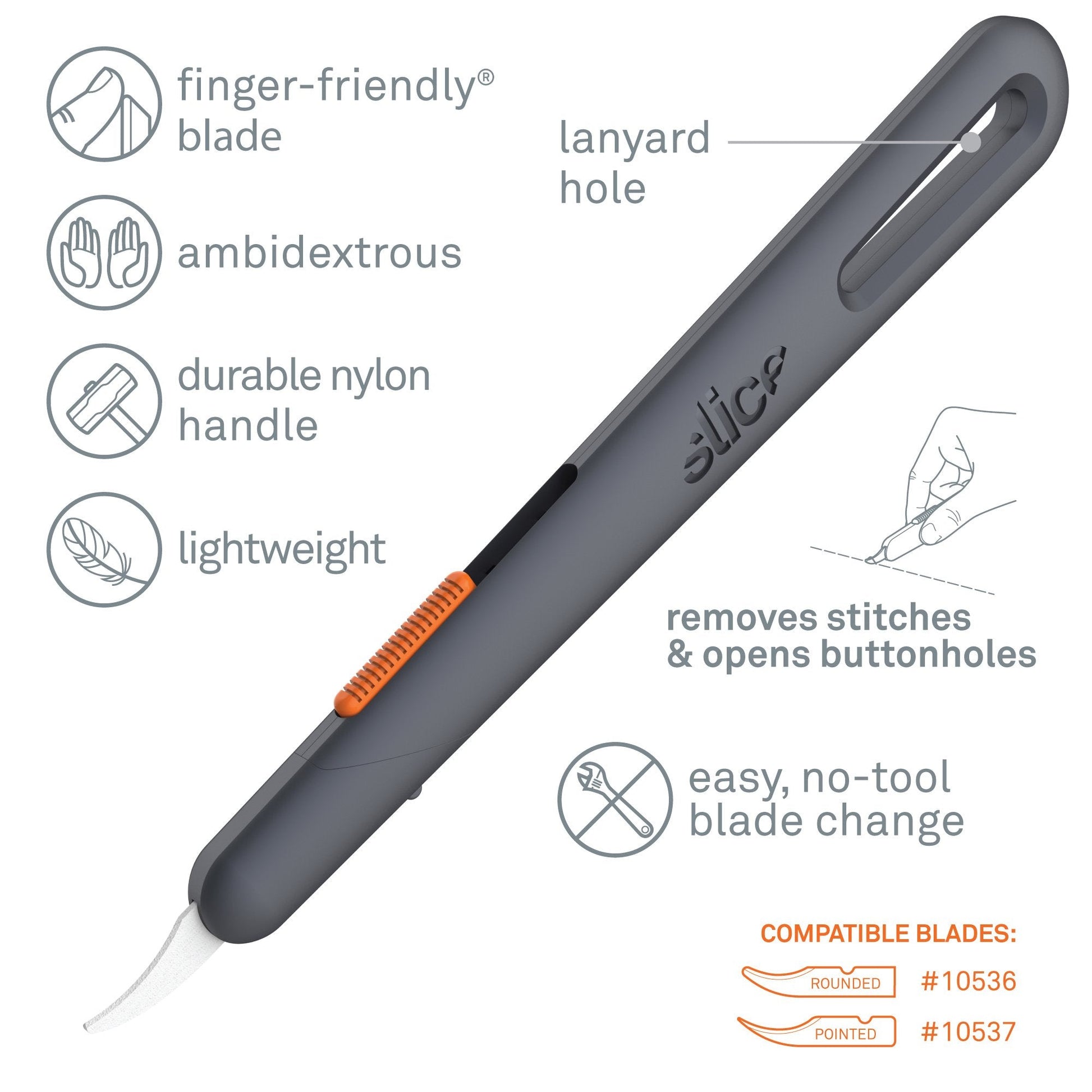 Do you and your seam ripper tire out before finishing your work? Designed to be comfortable and durable, the Slice® Manual Seam Ripper has a safety blade that lasts 11x longer than standard metal ones.